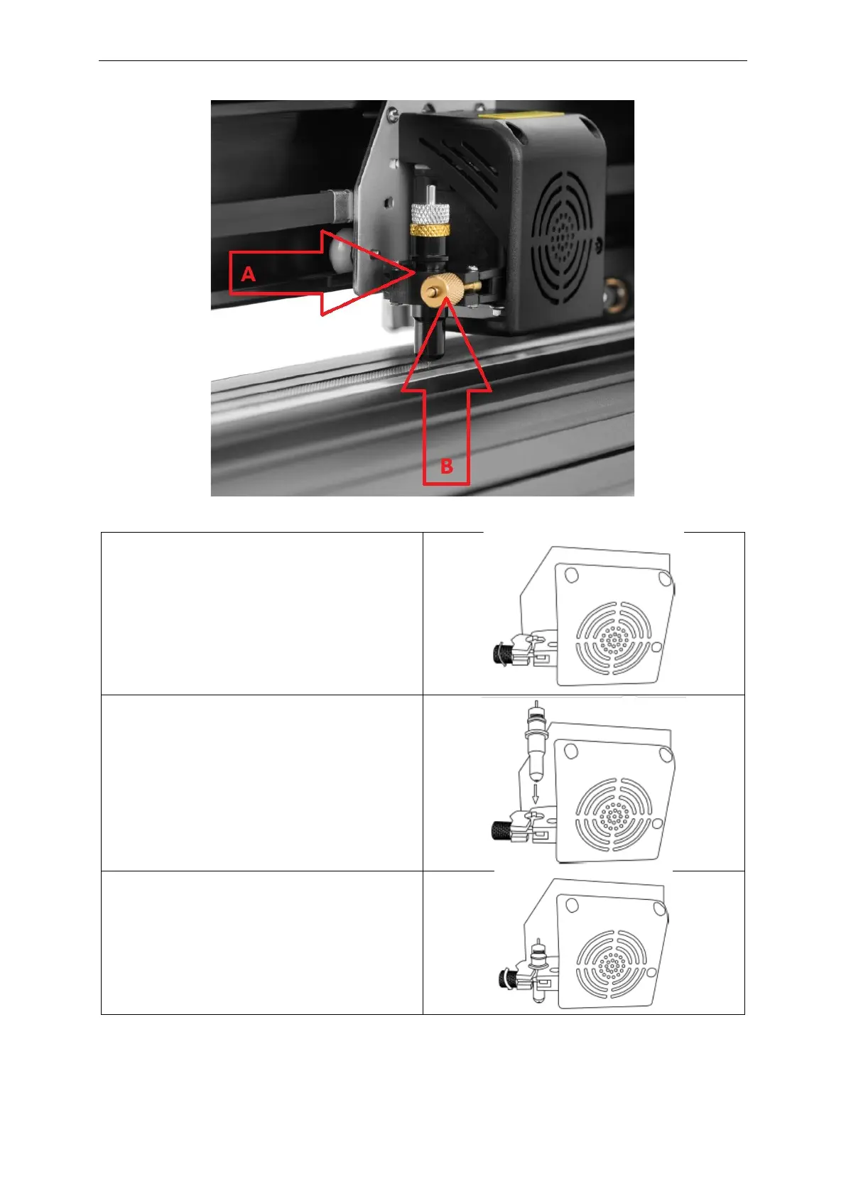 B) Låseknap (giver adgang til bladet eller pennevognen til udskiftning af tilbehør)