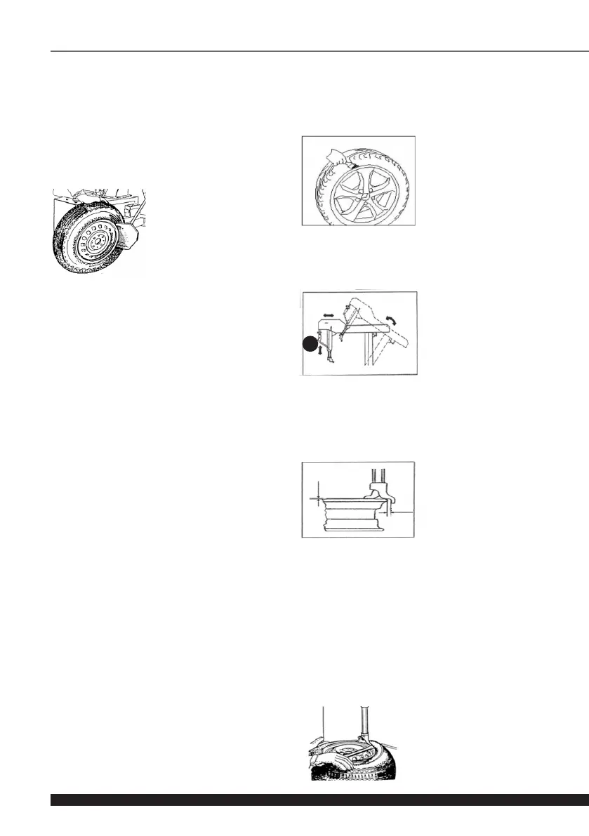 odrywacza wzdłuż stopki opony, około 1 cm od felgi.