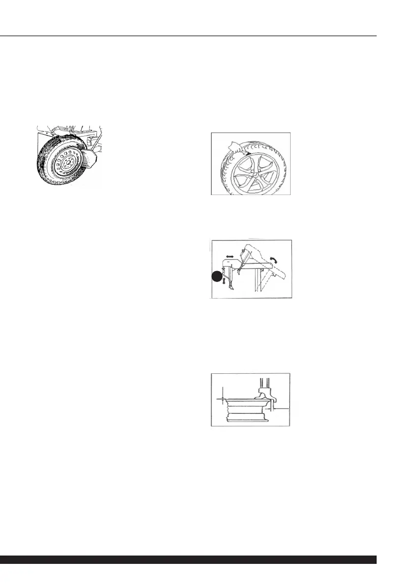 Tout en appuyant le démonte-pneu contre le creux