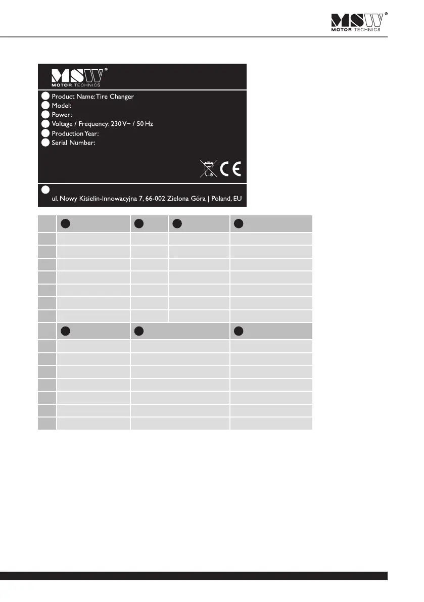 PL Nazwa produktu Model Moc Napięcie/Częstotliwość