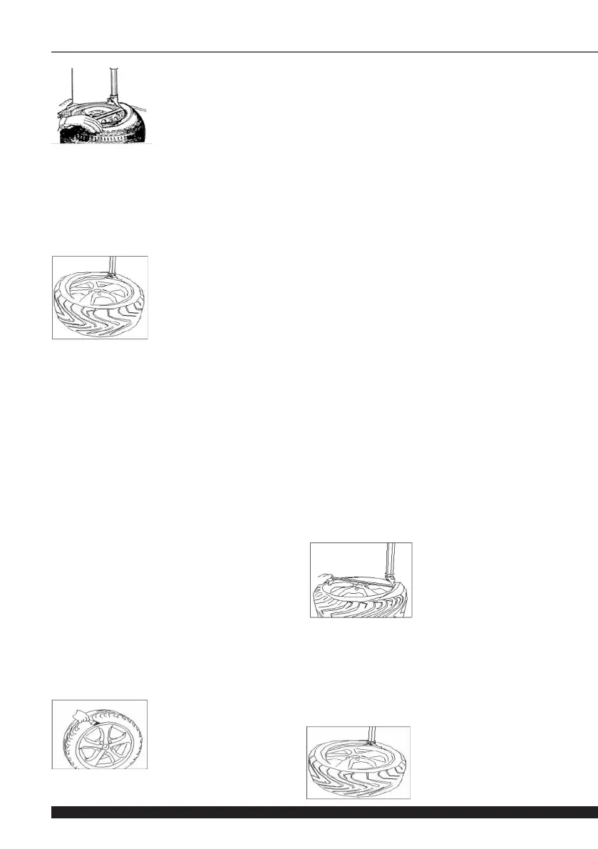h) Glissez le démonte-pneu sous le talon du pneu. Tout