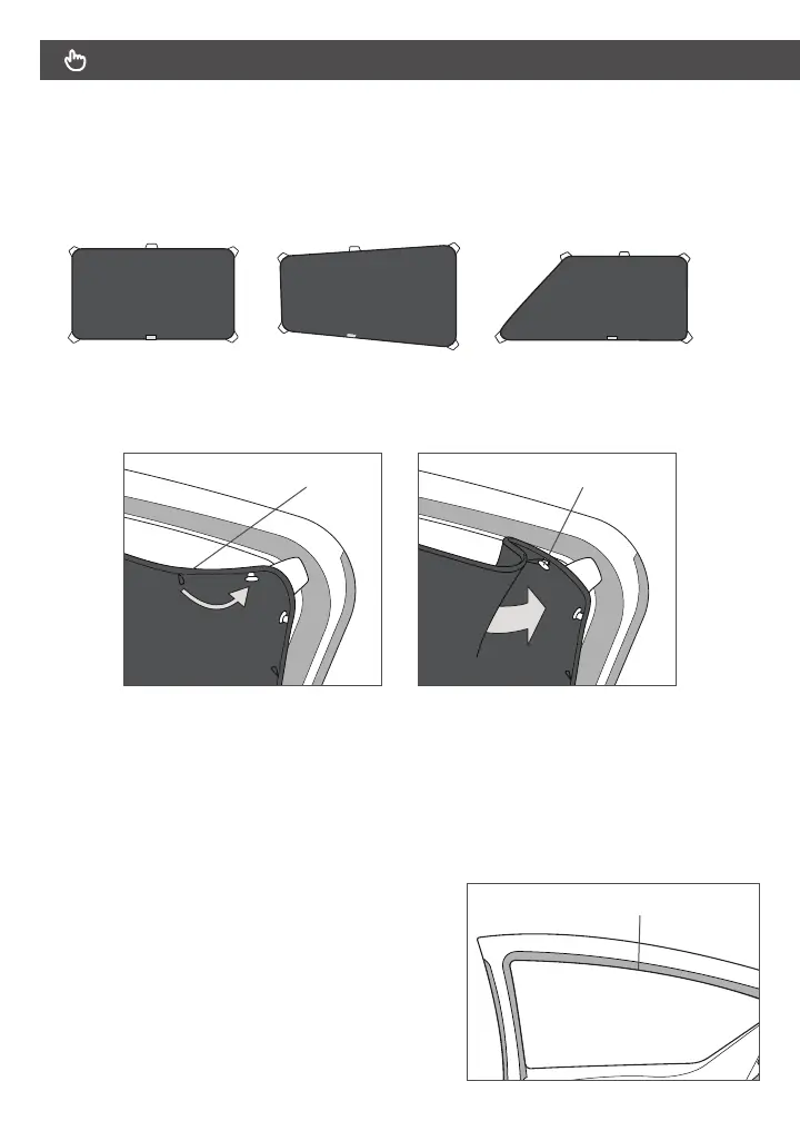 anillas. Utilizar los ganchos y anillas para ajustarlo a la forma concreta de la ventanilla.