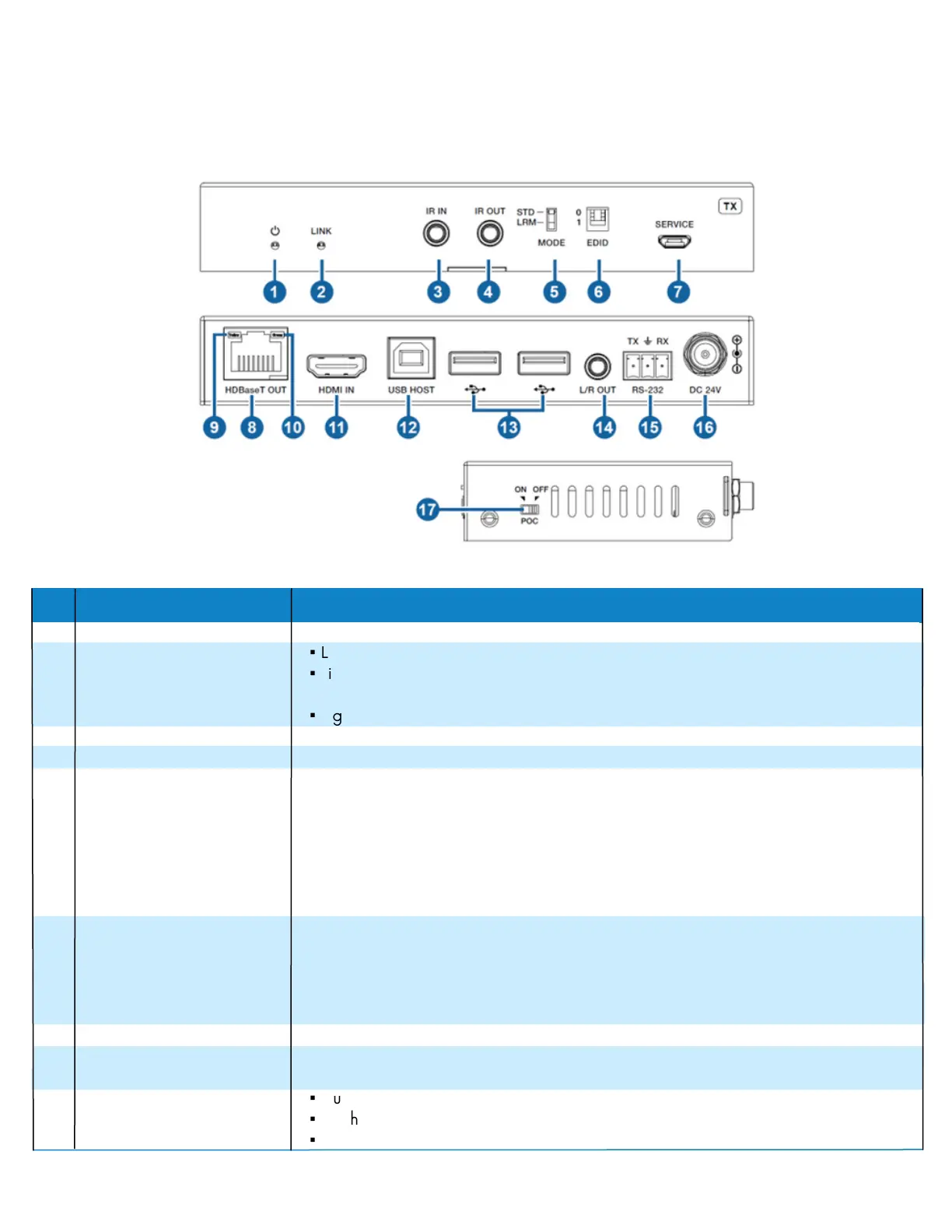 HDBaseT output port, connected to the HDBaseT IN port of Receiver with a