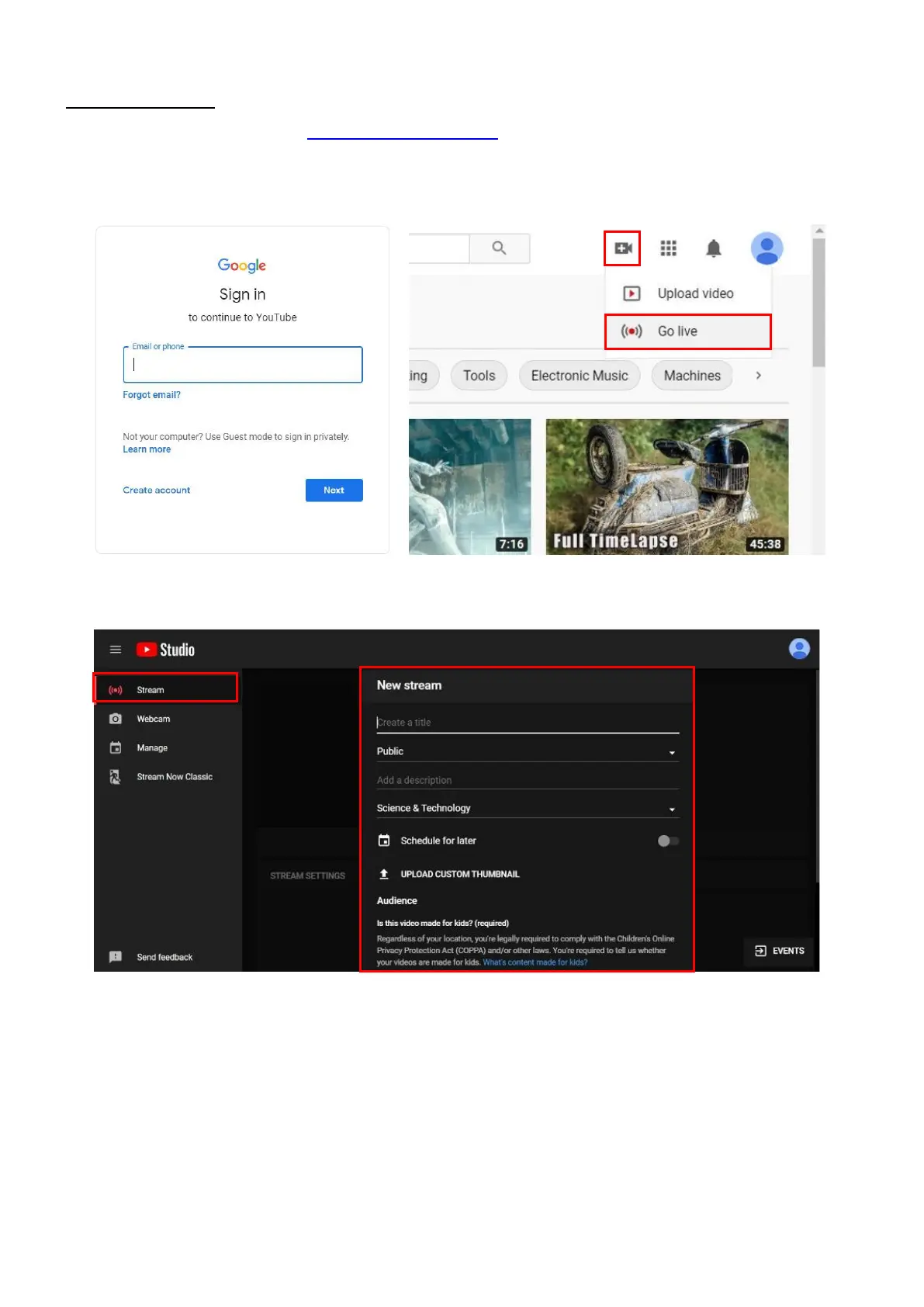 * If your account is using YouTube for the first time to create a video stream, then you may need to wait 24