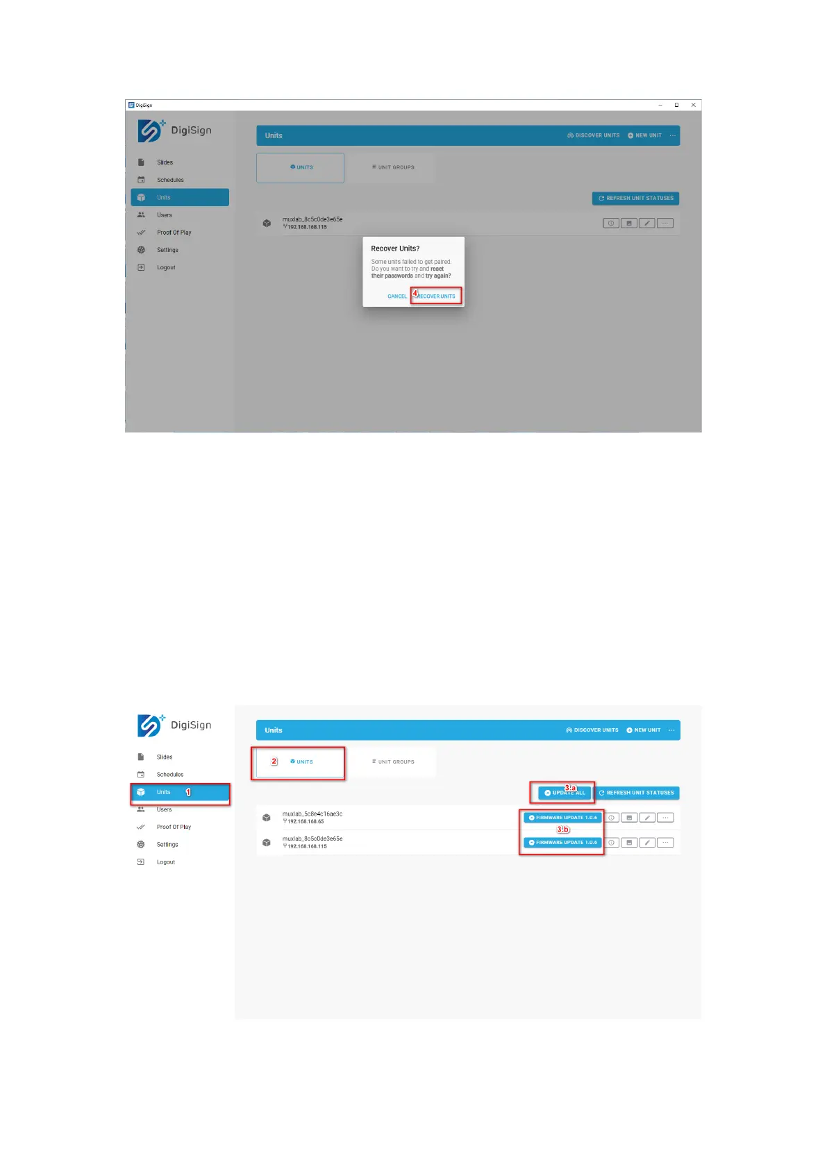 To update the Firmware of one or more DigiSign 4K Signage Player units (500789),