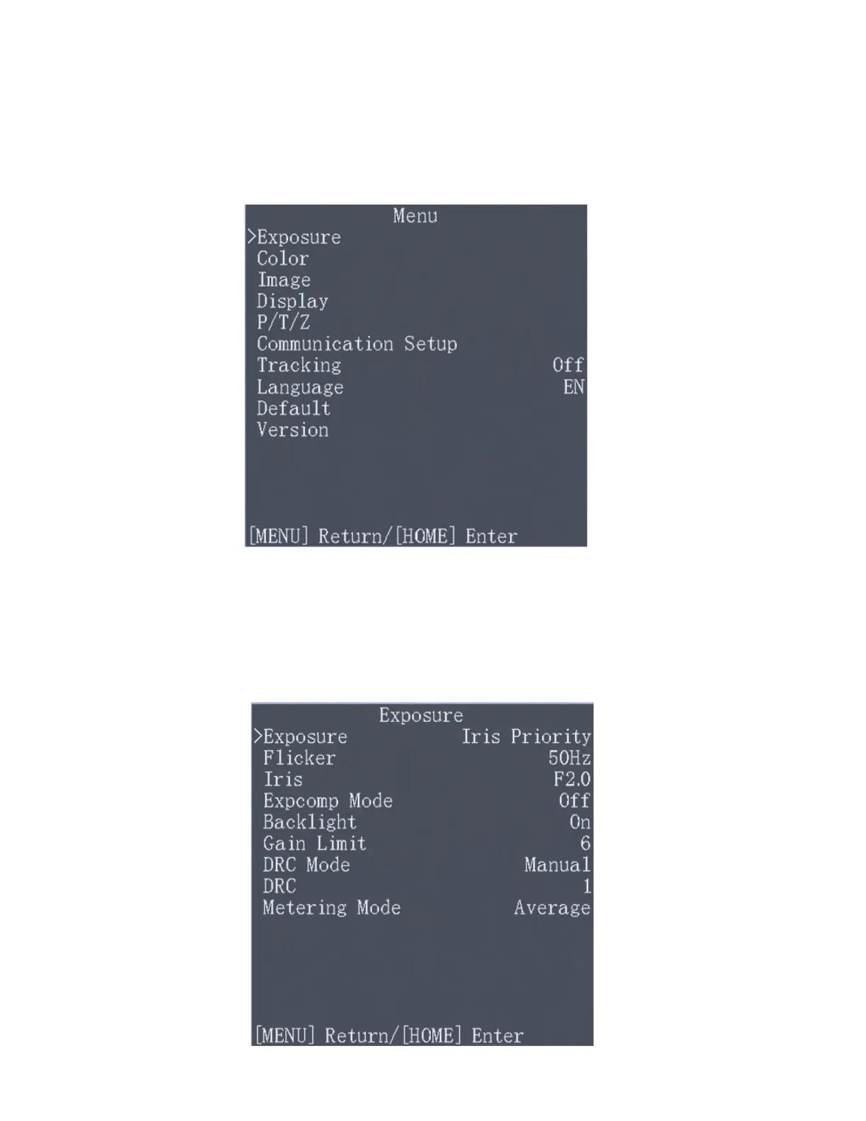Move the cursor to the Exposure submenu in the main menu and press the [home] button, the