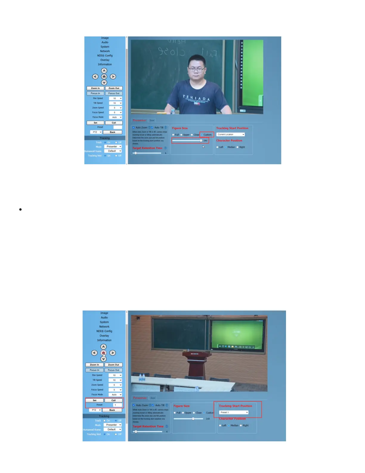 If you choose “Preset 1”, you need to set an additional preset position for the camera. When