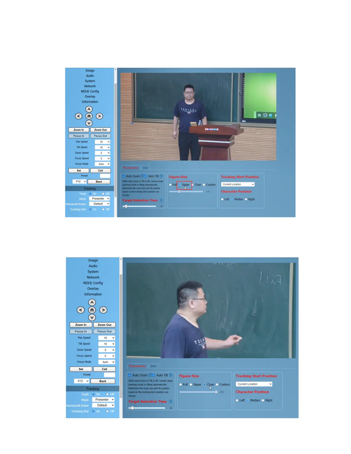 Upper: The close-up image includes tracking the target above the knee, as shown in the
