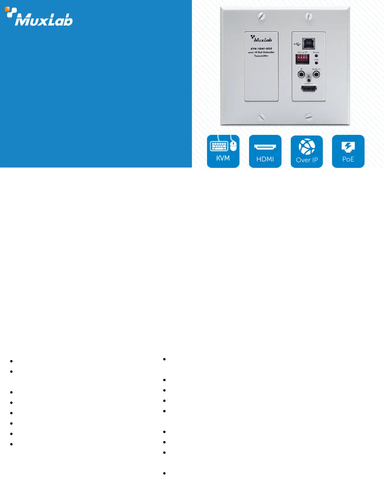 HDMI up to 4K /60Hz (4:4:4) via Cat5e/6 cable and is compatible with the MuxLab 500800-
