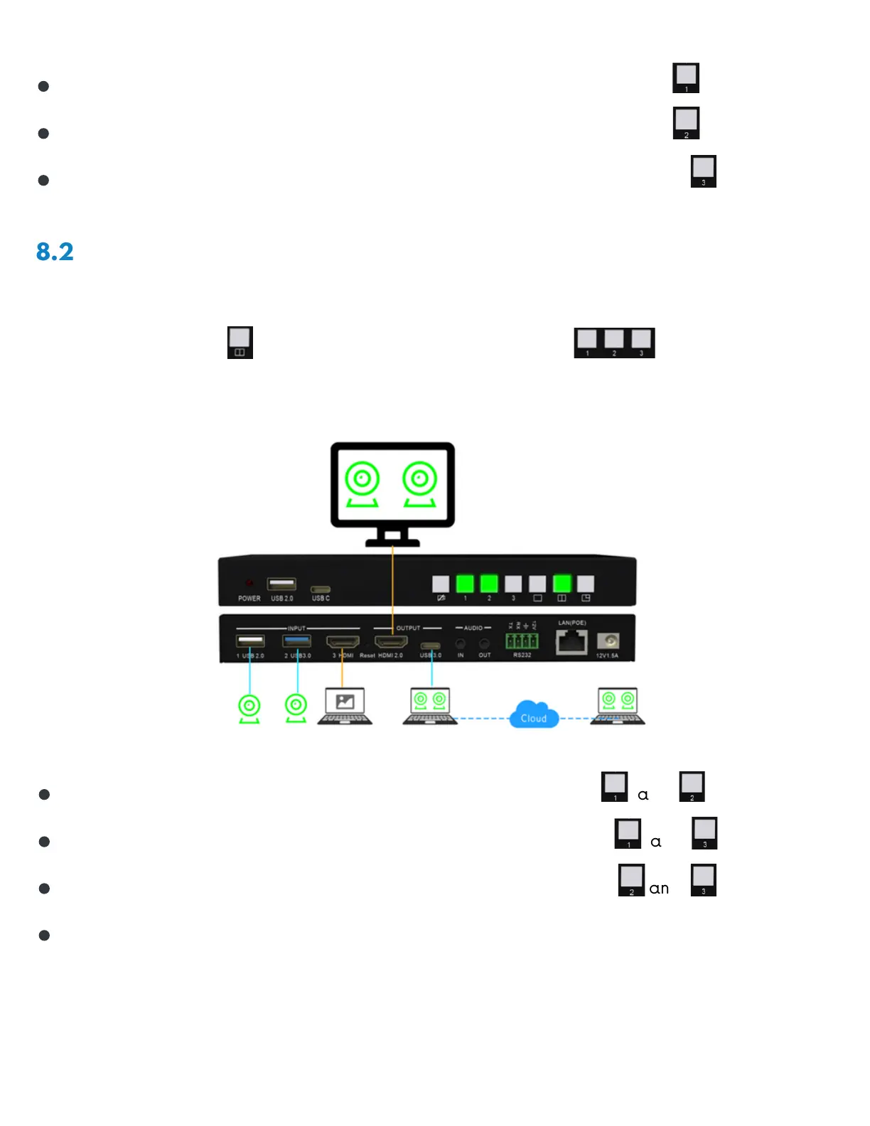 To switch PBP signal source to USB 2 and HDMI 3 press the buttons and
