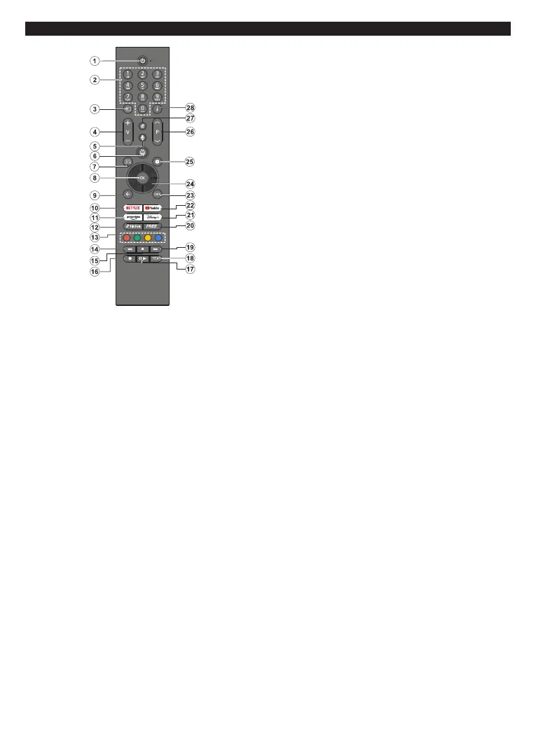 26. Programm +/-: Erhöht / verringert die Kanalnummer