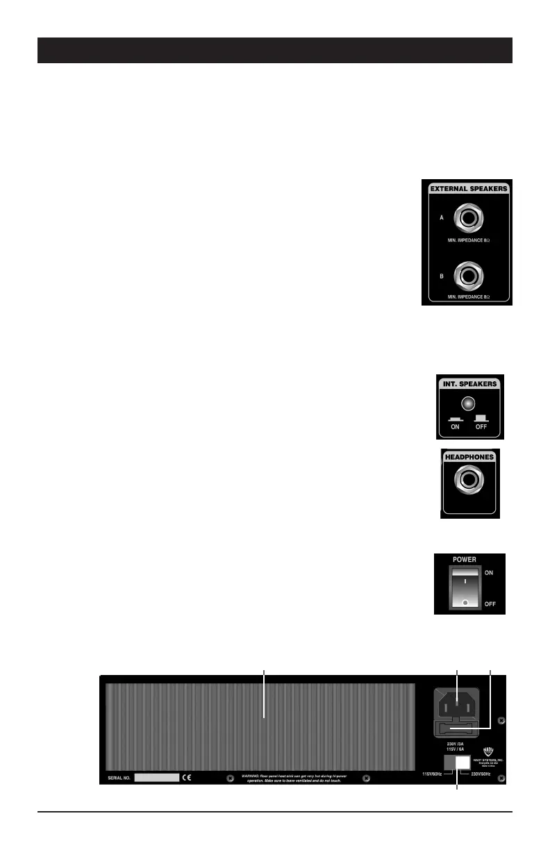 8Ω or greater. The internal speakers can be used simultaneously or turned off