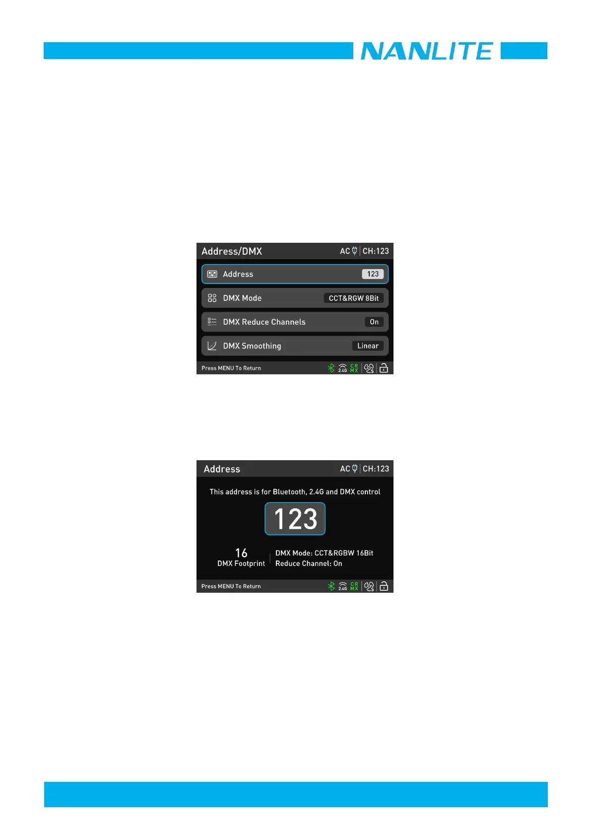 Enter the DMX mode interface: Address/DMX → DMX Mode.