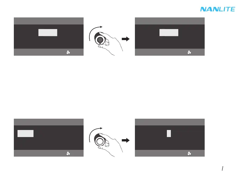 Rotate the right knob to select DIM (range: 0%-100%), HUE (range: 0-360) or SAT (range: 0-100), and rotate