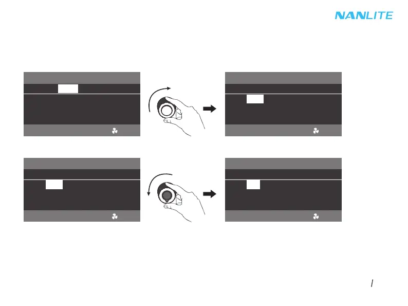 Rotate the right knob to select DIM or COLOR (CCT or HSI).