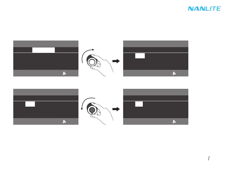 Rotate the right knob to select DIM, CCT or INTERVAL RANGE (range: 1s-60s) , and rotate the left knob