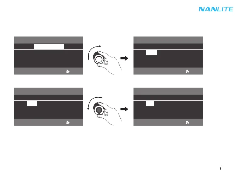 Rotate the right knob to select DIM or CCT, rotate the left knob to set the corresponding parameters, and