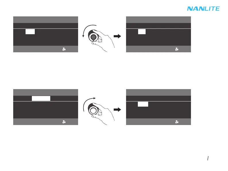 Rotate the right knob to select DIM or COLOR (CCT or HSI).