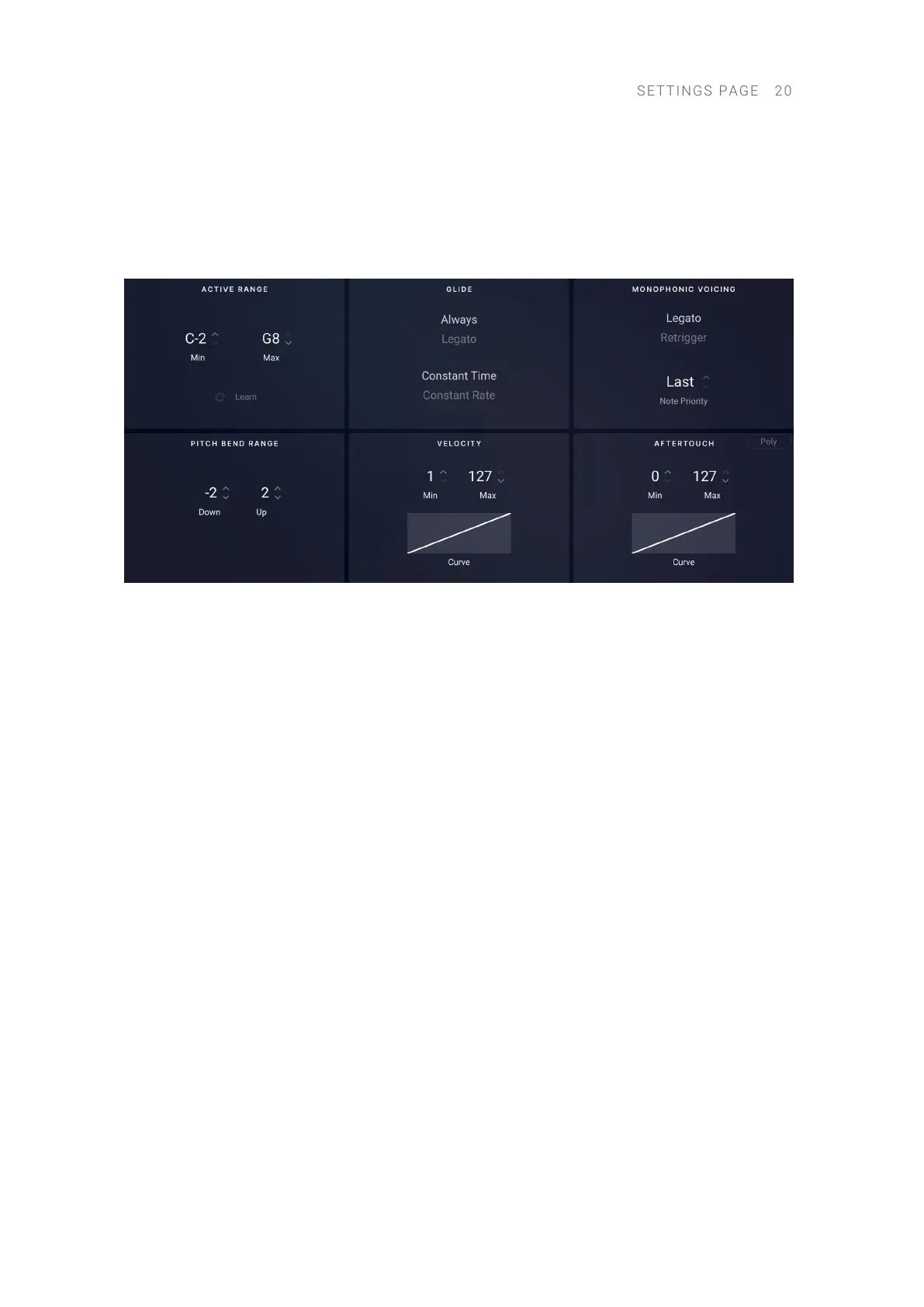 Curve: Let’s you freely adjust the velocity response curve to your liking.
