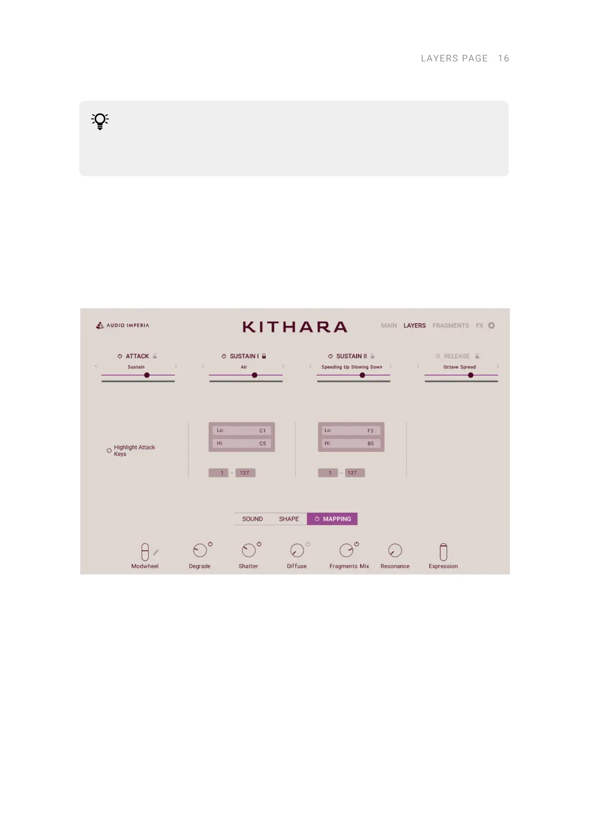Sustain2 layers as well as highlight the keys for the Attack layer.