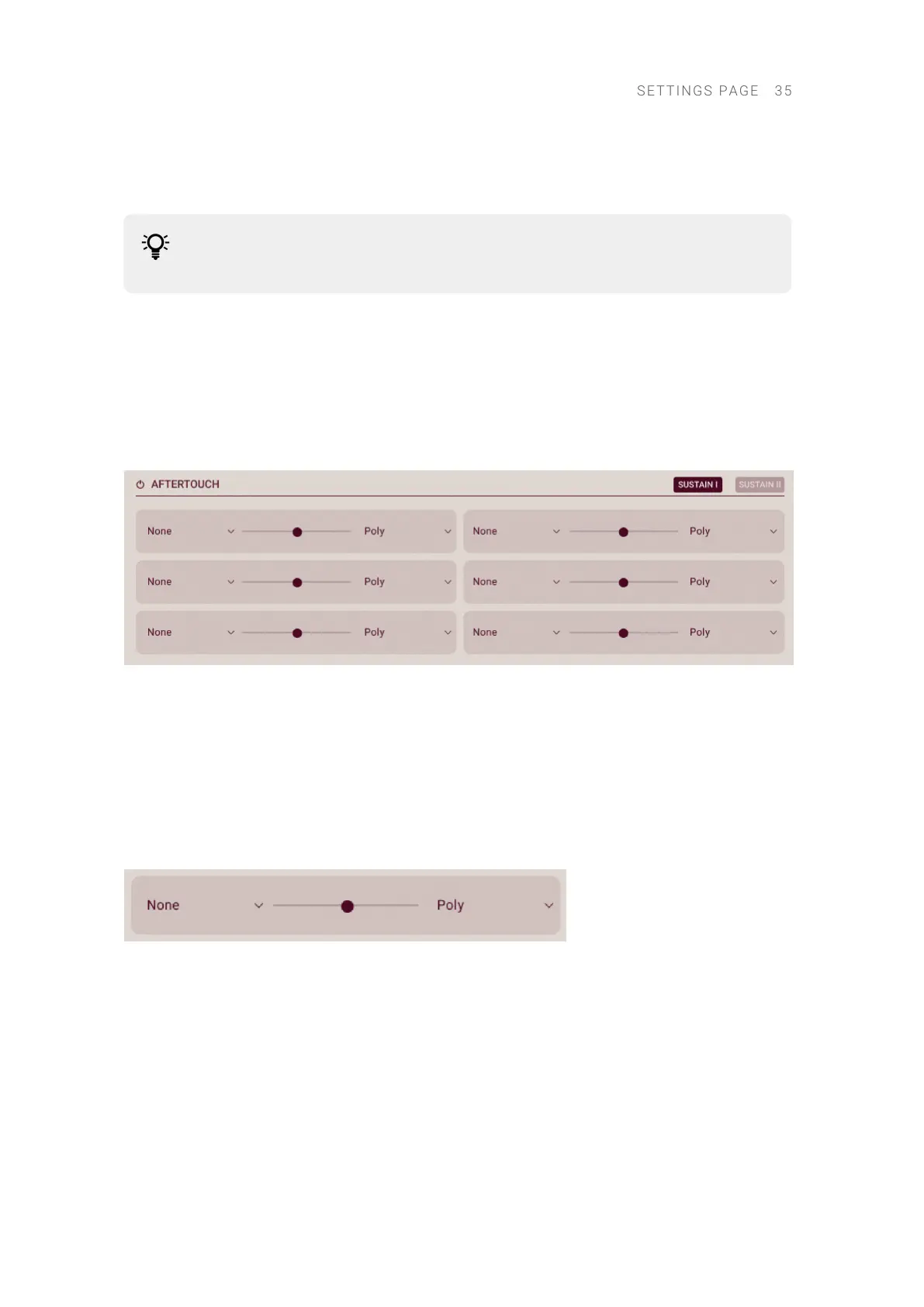 The Aftertouch section lets you modulate up to six parameters in each of the Sustain 1 and Sustain