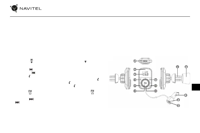 NAVITEL BHF08 PRO – FM-трансмітер з функцією Hands Free, здатний відтворювати аудіофайли з зовнішніх носіїв по Bluetooth, FM або
