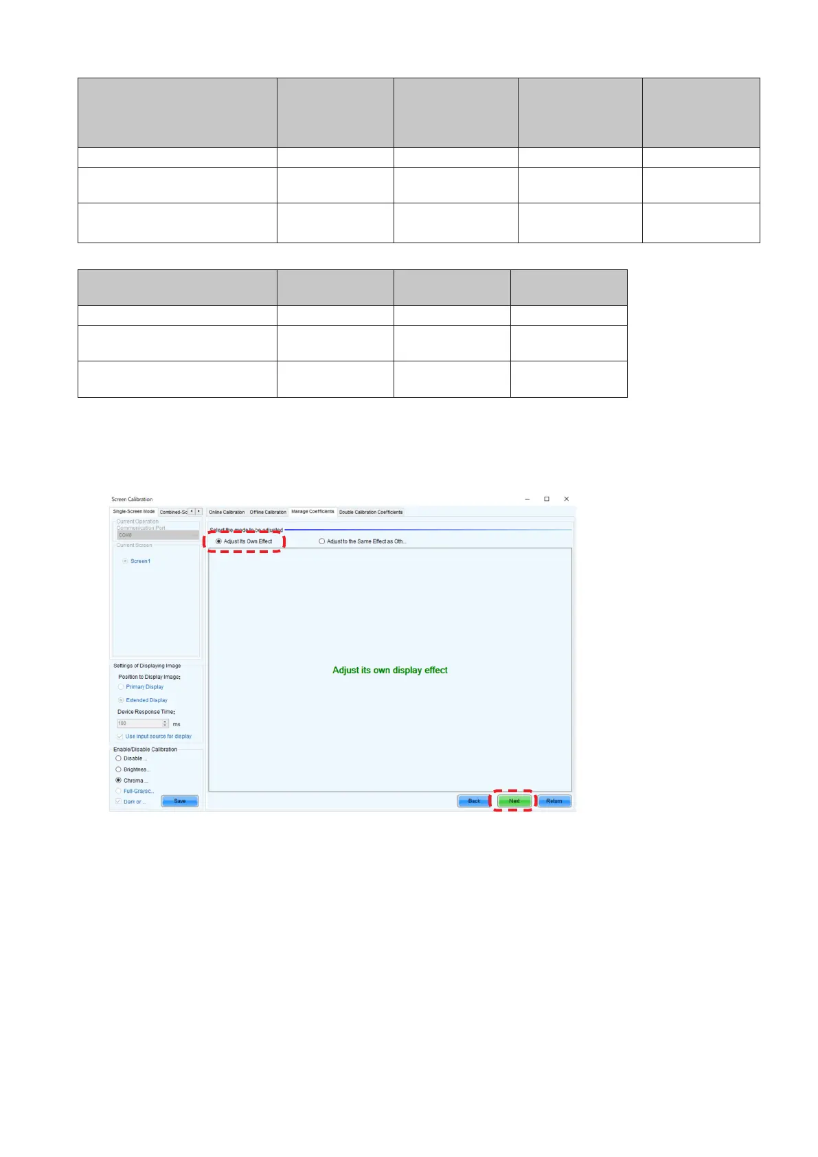 Check that “Adjust Its Own Effect” is selected and click “Next” to start the calibration settings reading