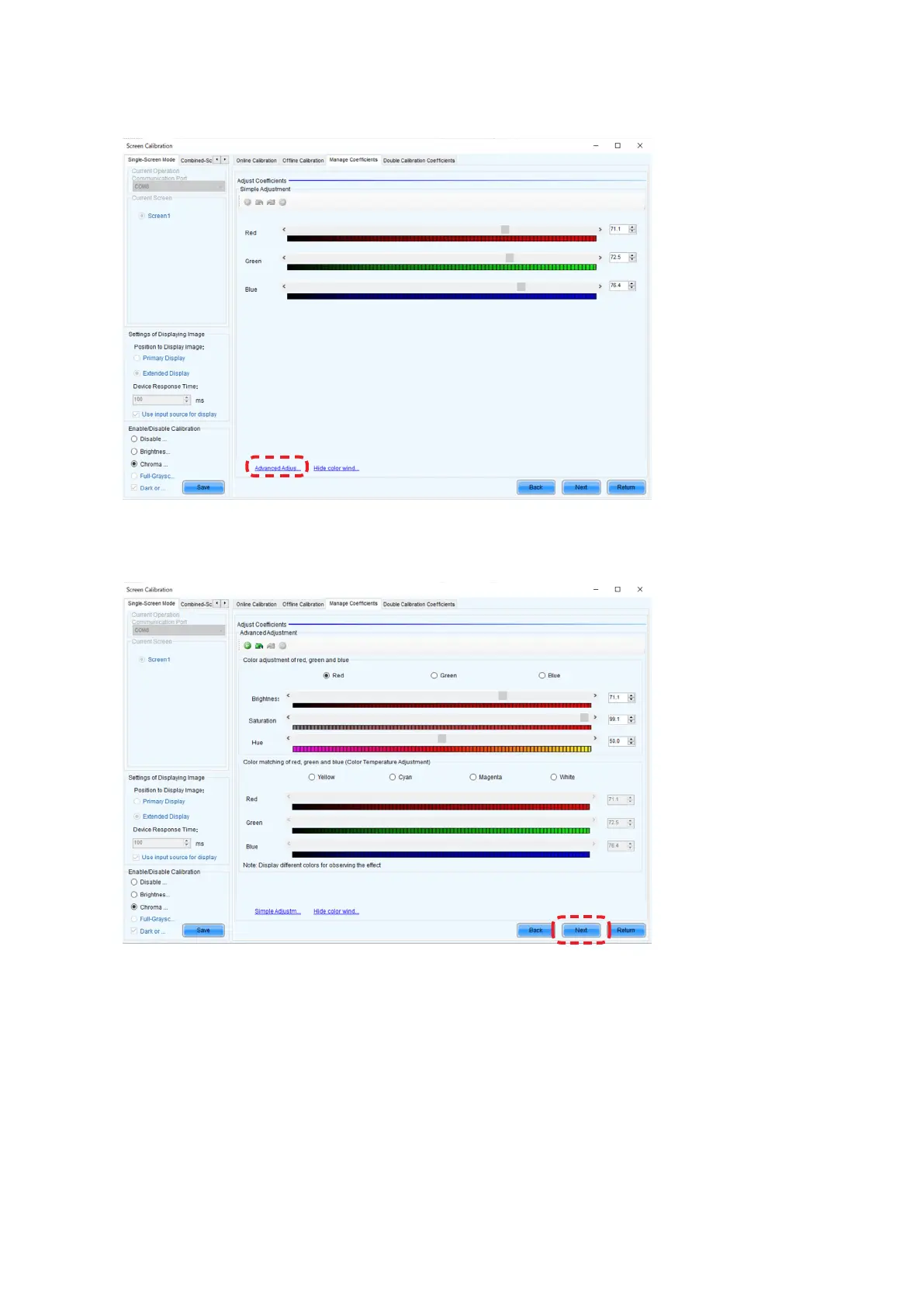 (7) Adjust the “Color adjustment of red, green and blue” parameters, and then adjust the “Color matching