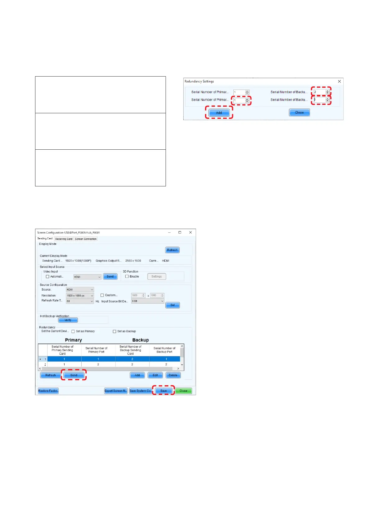 In the Redundancy Settings screen, set the Port number of the Backup side LED controller (Sending Card) that