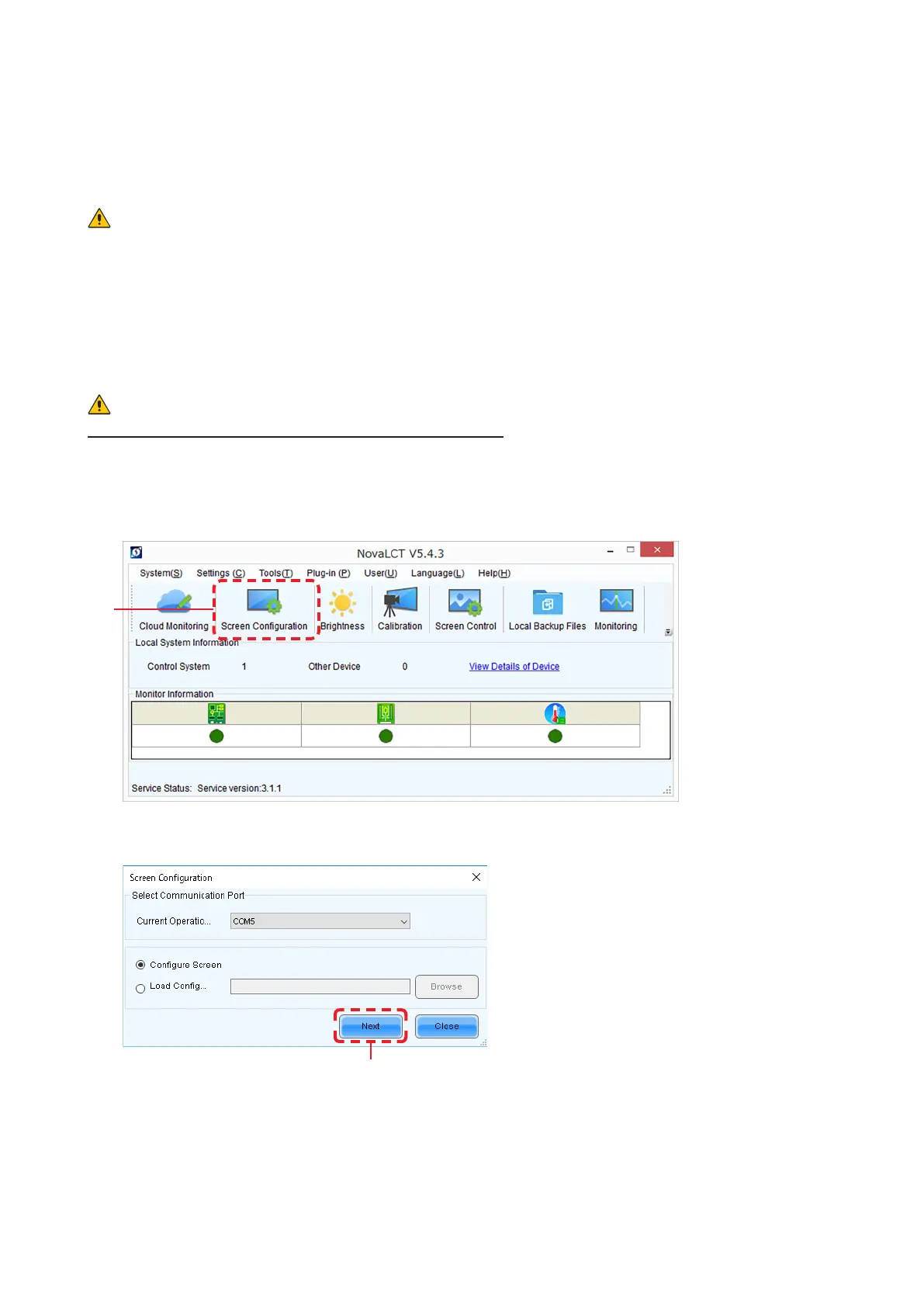 Using a NovaLCT*.exe le different than the one in the supplied USB drive may lead to malfunction.