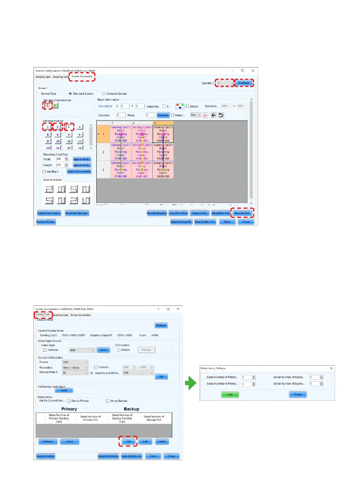 Select/enter the value for “Screen Type”, “Receiving Card Size”, “Columns” and “Rows”, and use “Ethernet Port