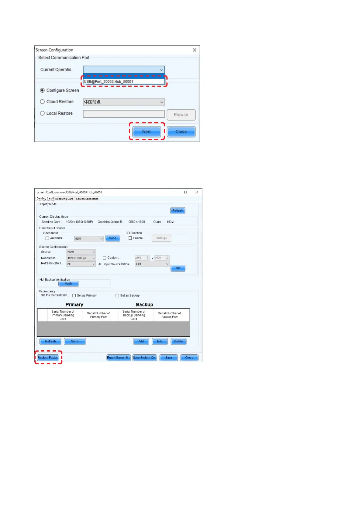 Select the port in “Select Communication Port”, and then click “Next”.