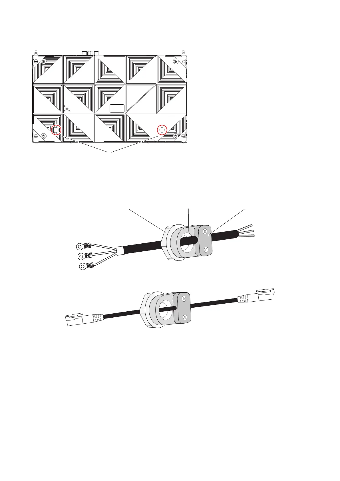 There are holes on the back of the cabinet for passing signal cables and power cords.