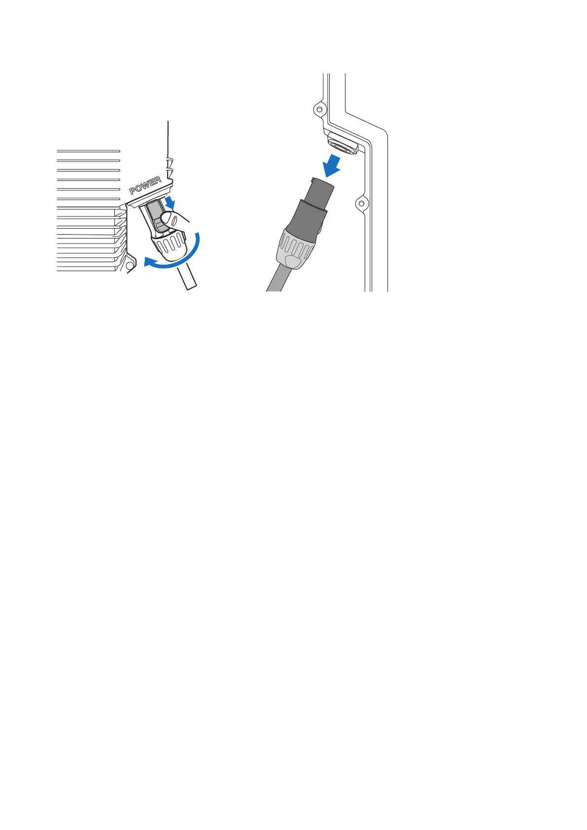 Keep the button (1) pressed and rotate in direction (2) to disconnect the power cord.