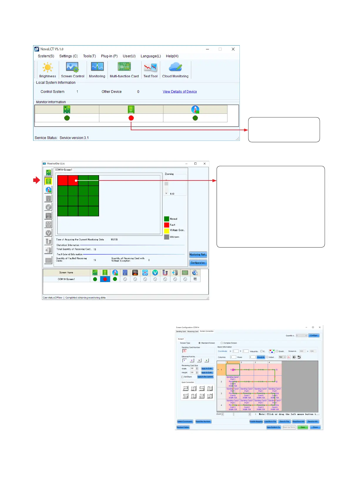 To display more details, click “Monitoring”, and then click “Receiving card” on the screen that is displayed.
