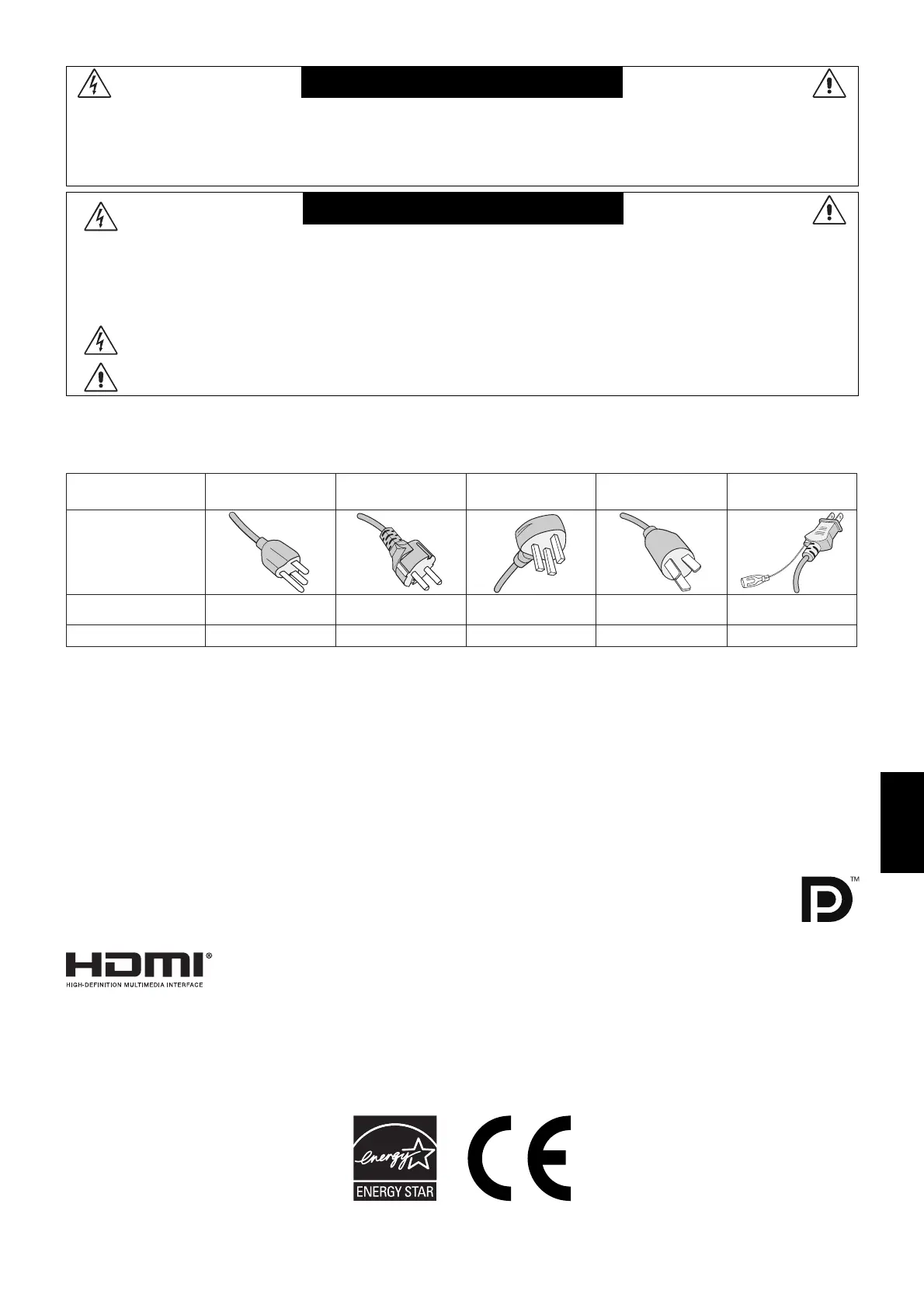 LET OP! Gebruik de voedingskabel die bij de display is meegeleverd op basis van de specifi caties in de onderstaande tabel. Als