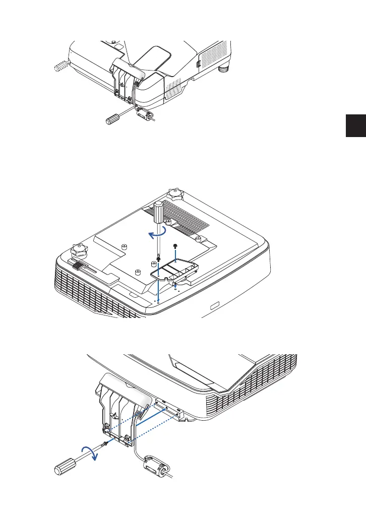 on the projector, then align the position of the fixing holes. Fasten them by two screws.