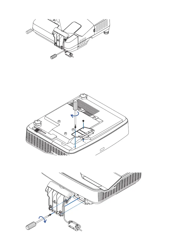 nei fori di fissaggio del proiettore, quindi allineare la posizione dei fori di fissaggio. Fissare con