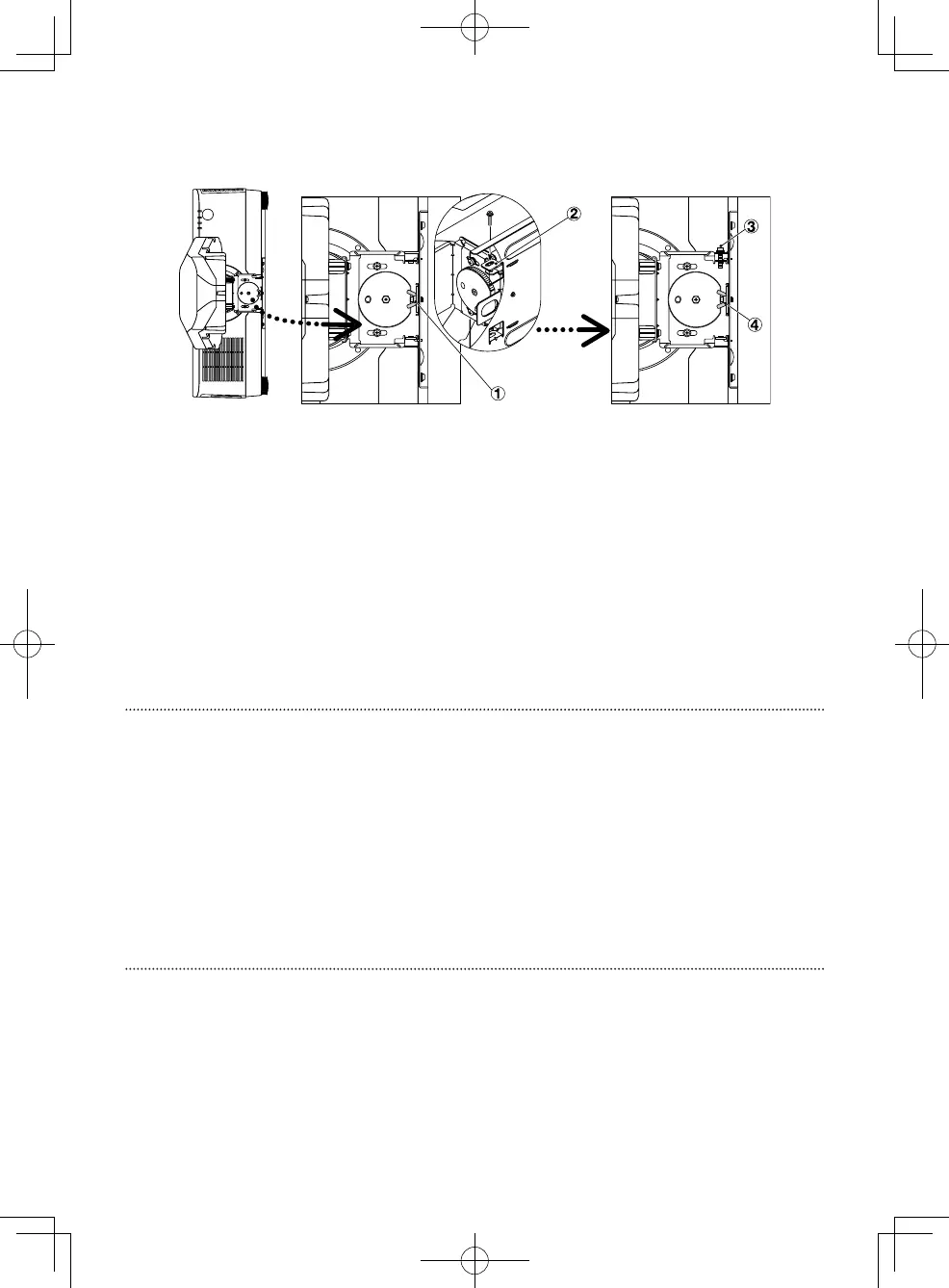 在 垂 直 安 装 投 影 机 的 情 况 下 使 用 纵 向 方 向 时 ,如 果 镜 头 单 元 向 下 倾 斜 ,则 根 据 以 下 程 序 调 整 倾 斜 。