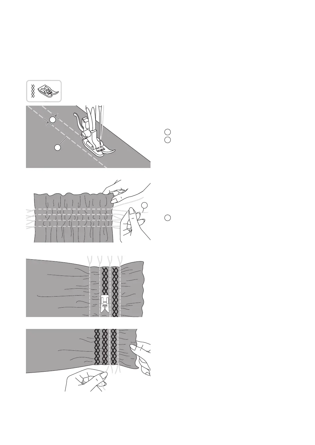 "smocking". It is used to decorate the front of blouses or cuffs. The smocking stitch adds