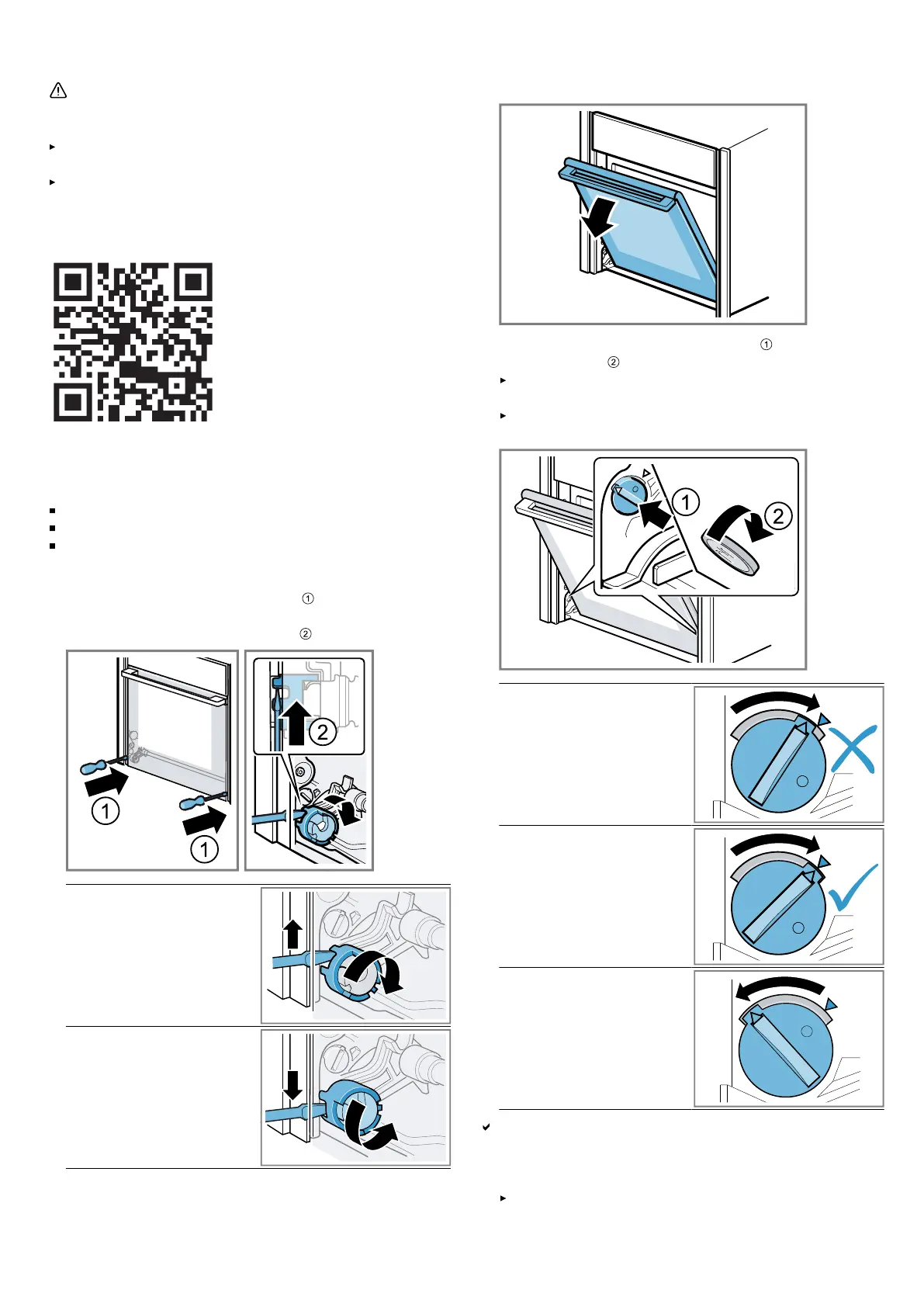 To detach or attach the appliance door, always turn