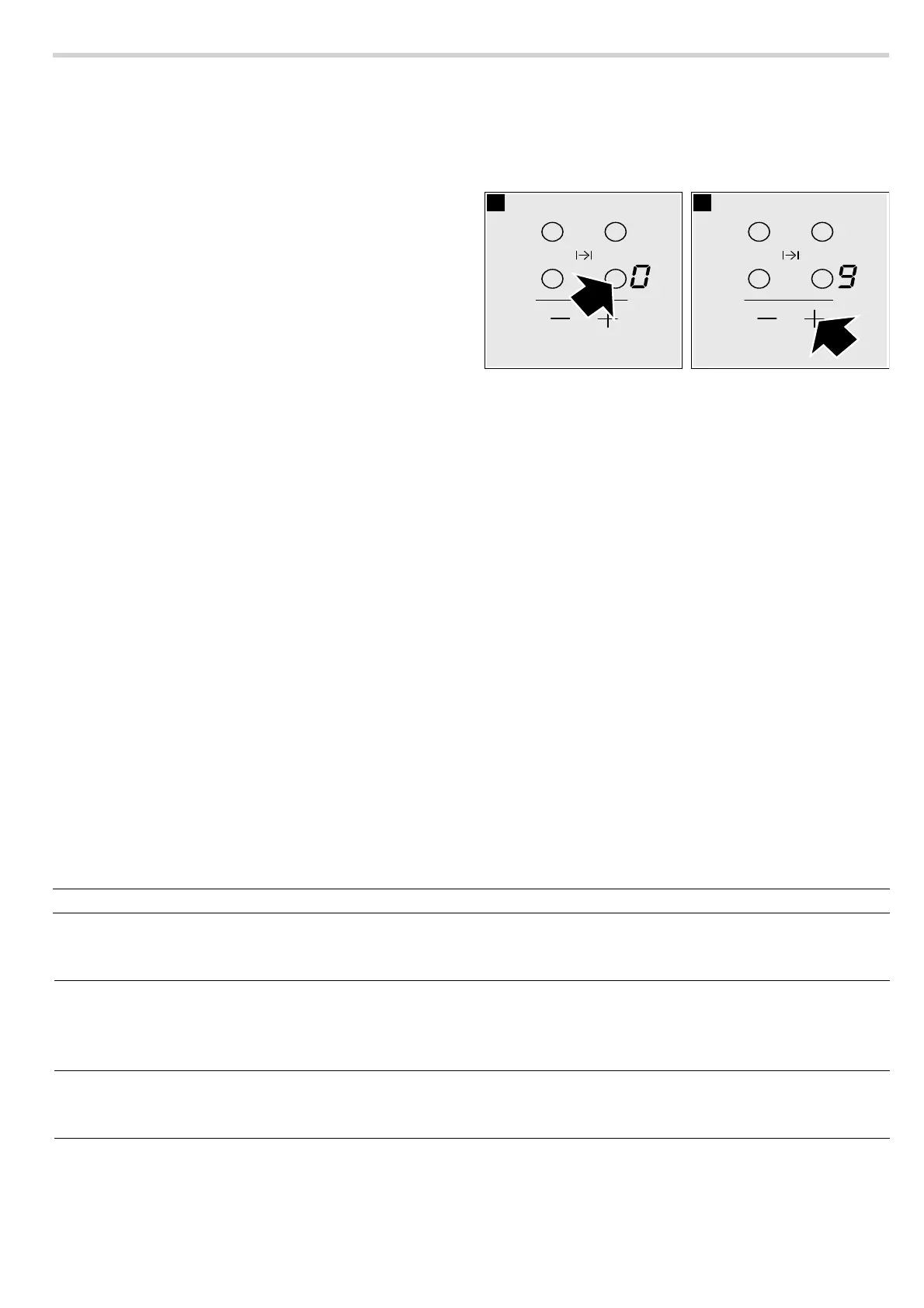 ten und die Kochstellen einstellen. In der Tabelle finden sie