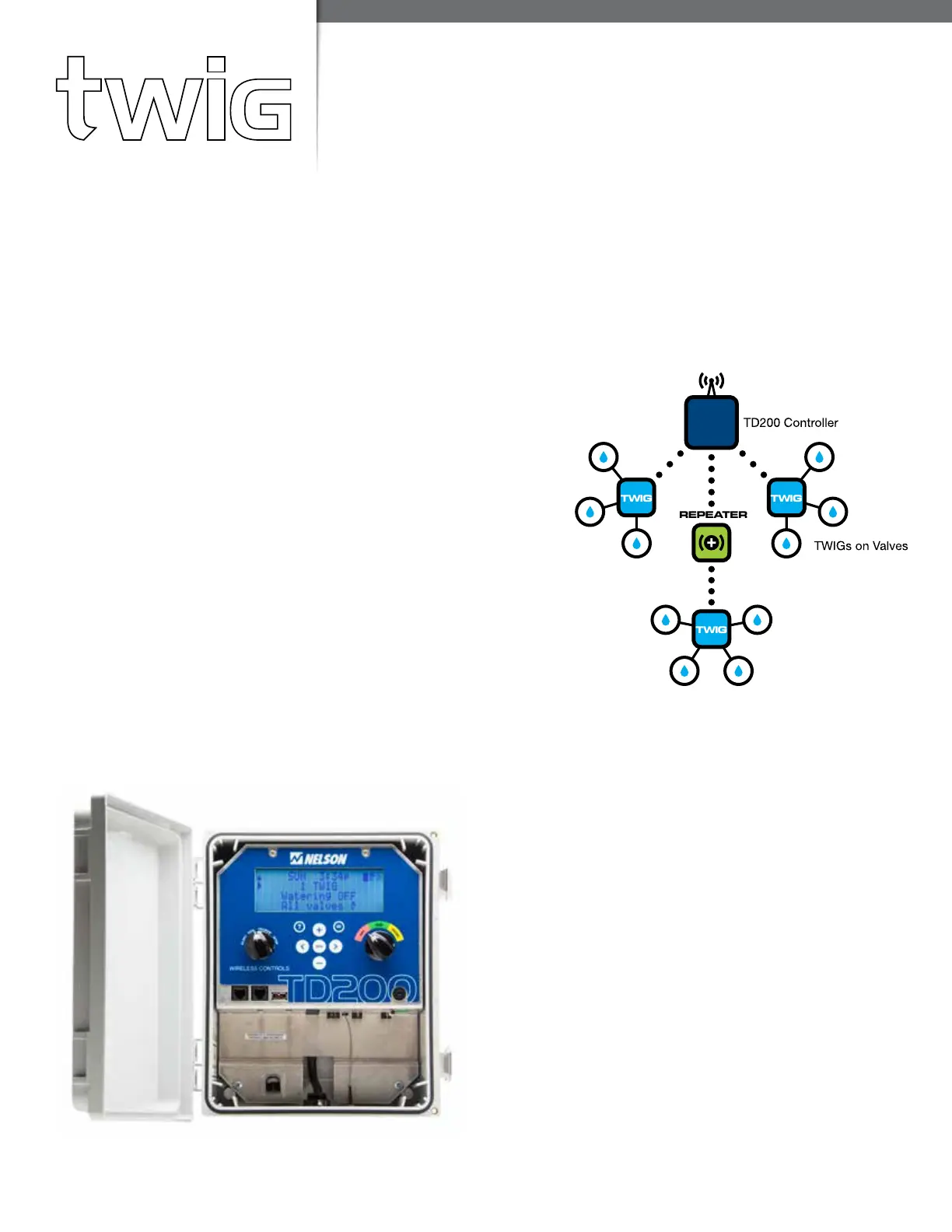 wireless radio commands. It is capable of controlling up to 100 TWIGs on valves.