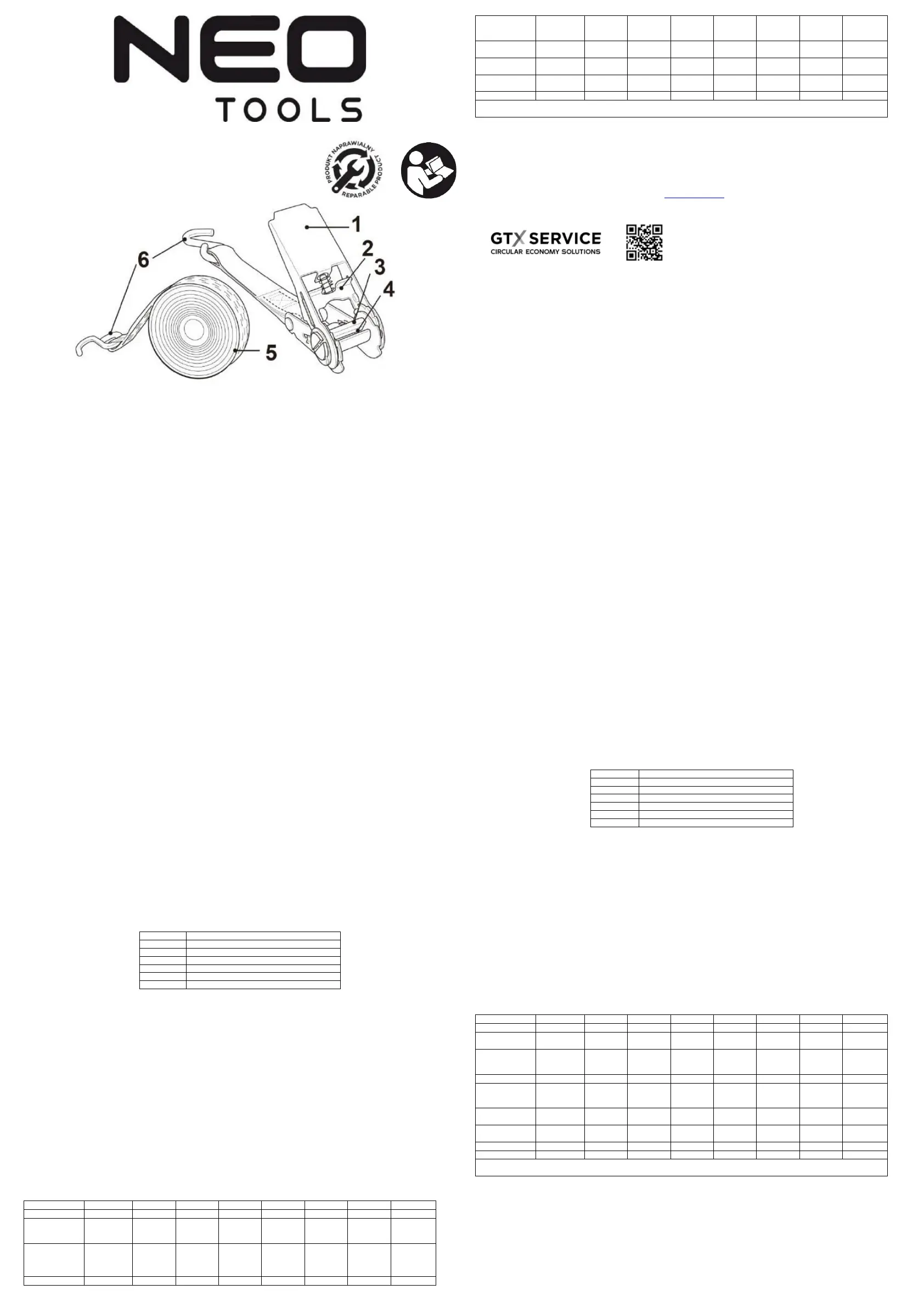 • Zaleca się zachowanie ostrożności tak aby nie uszkodzić pasa mocującego ostrymi krawędziami ładunku, do którego zostało użyte.