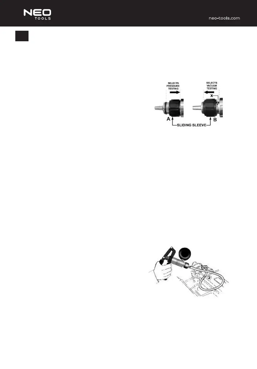 Aby wybrać tryb testowania PODCIŚNIENIA, należy przesunąć tuleję