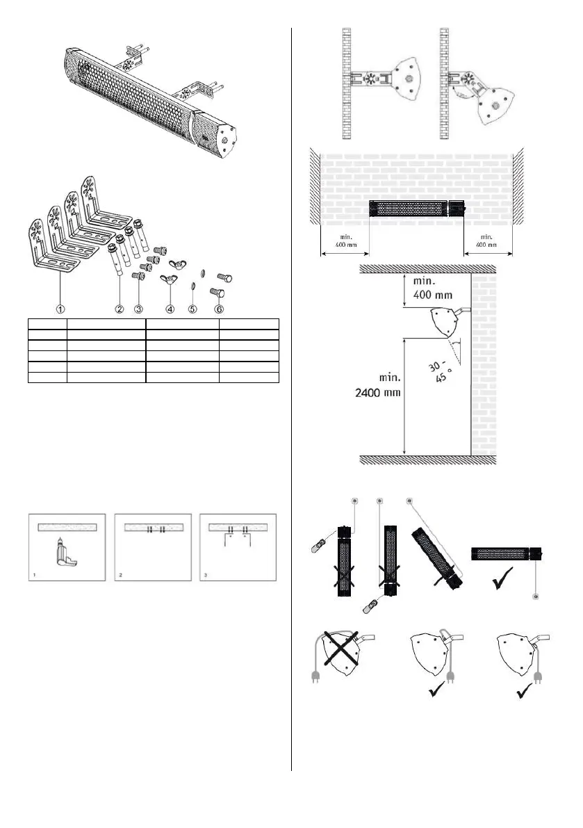 1. Zwei Halterungen 1 # sollten mit den Schrauben 3 # am Heizgerät