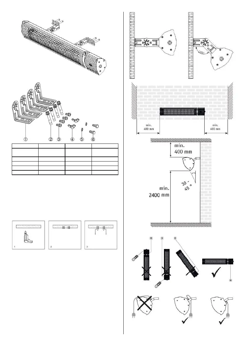 1. Două paranteze 1 # trebuie fixate la încălzitor prin șuruburile 3 #.
