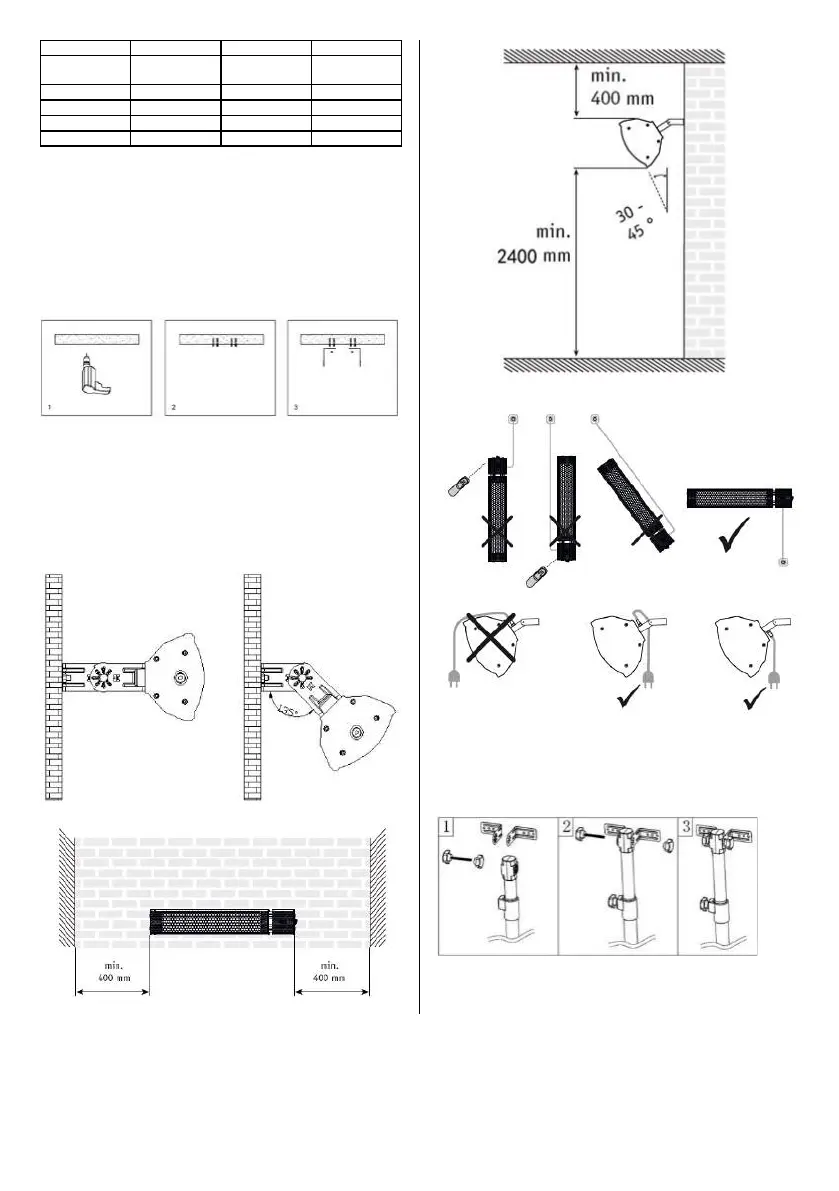 Ohrievač musí byť inštalovaný najmenej 240 cm nad podlahou