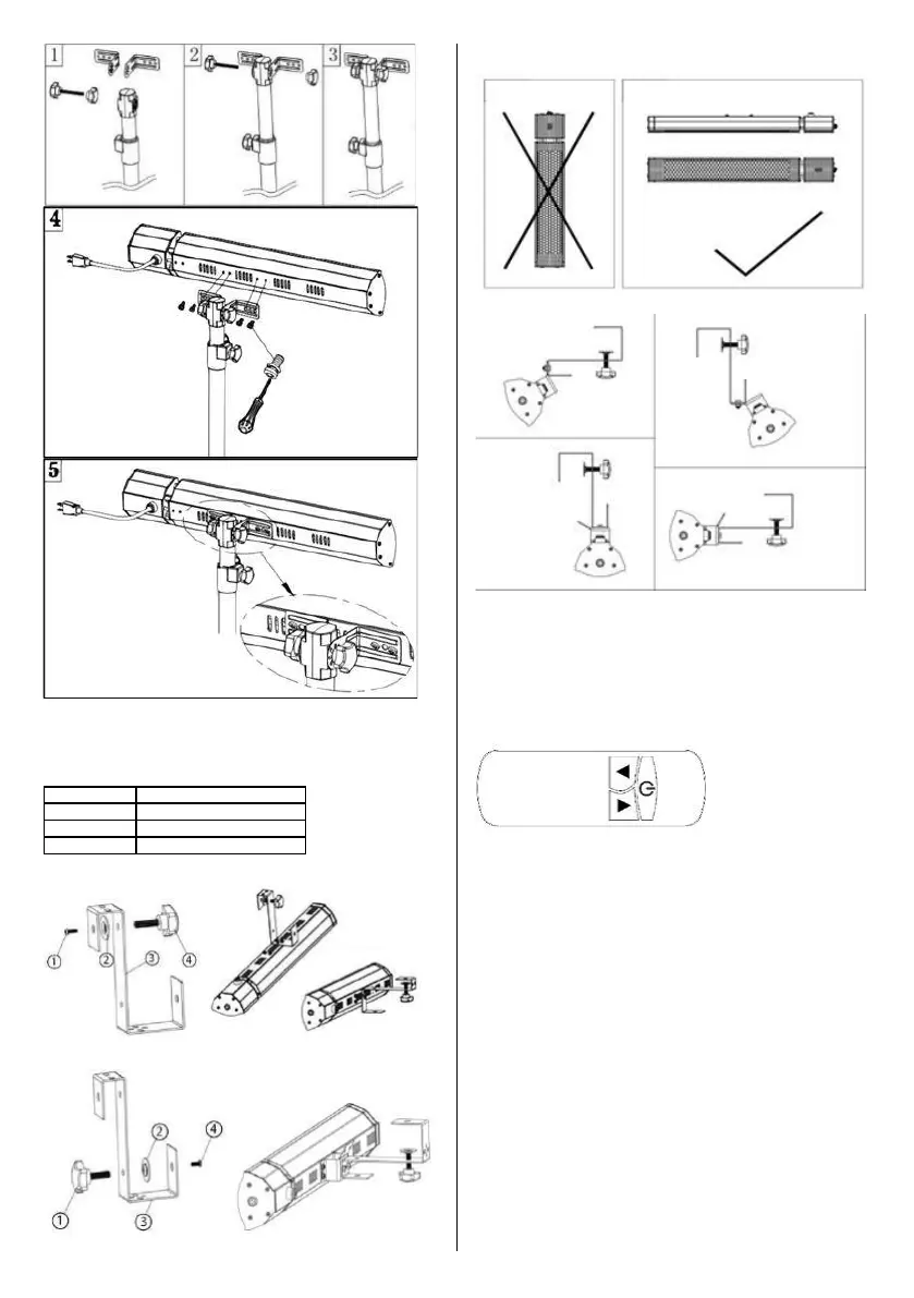 Le radiateur est conçu pour être monté sur le parasol ou l'auvent,