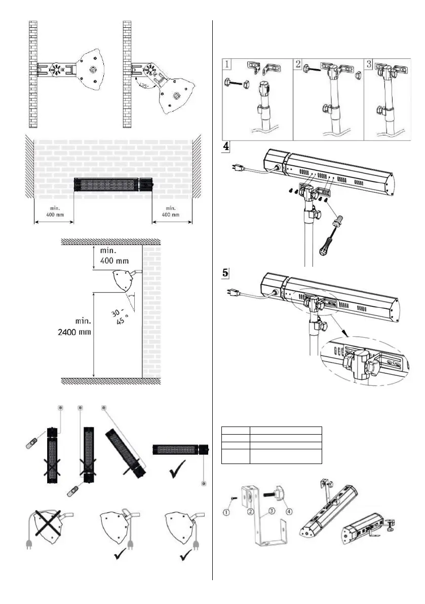 Grijalica mora biti postavljen najmanje 240 cm iznad poda